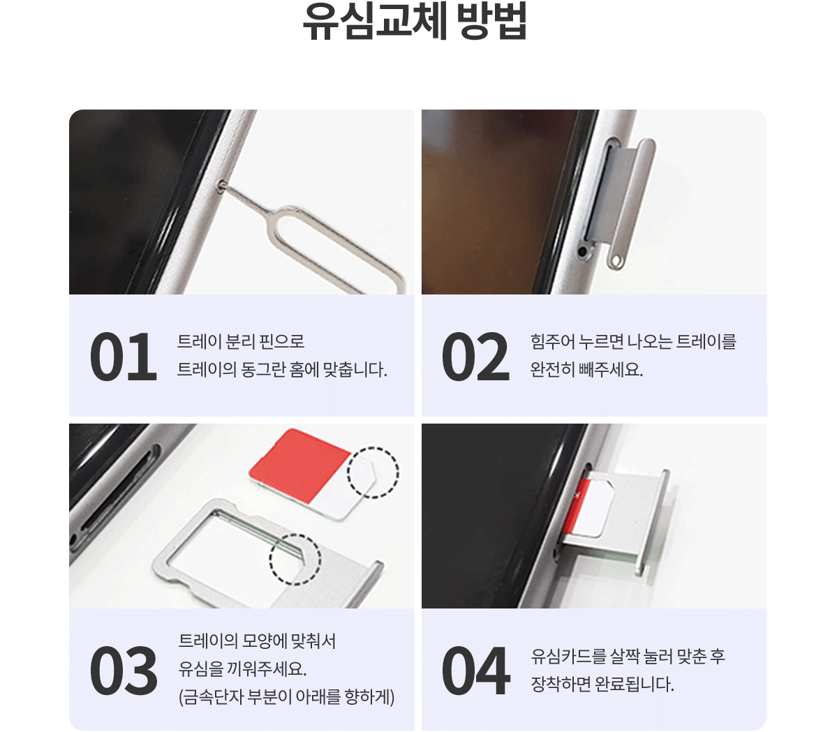 사용전 본인의 휴대폰에 맞는 유심 사이즈를 확인 후 사용하세요